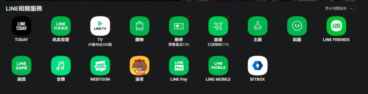 圖|高達16種的LINE相關服務,可以滿足各項需求。