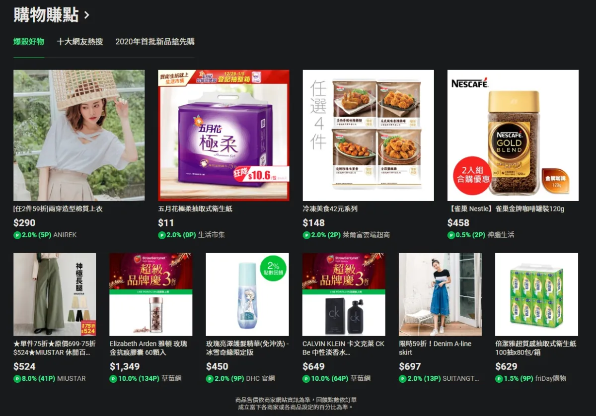 購物賺點 熱門超值的精選商品還有 LINE POINT 回饋
