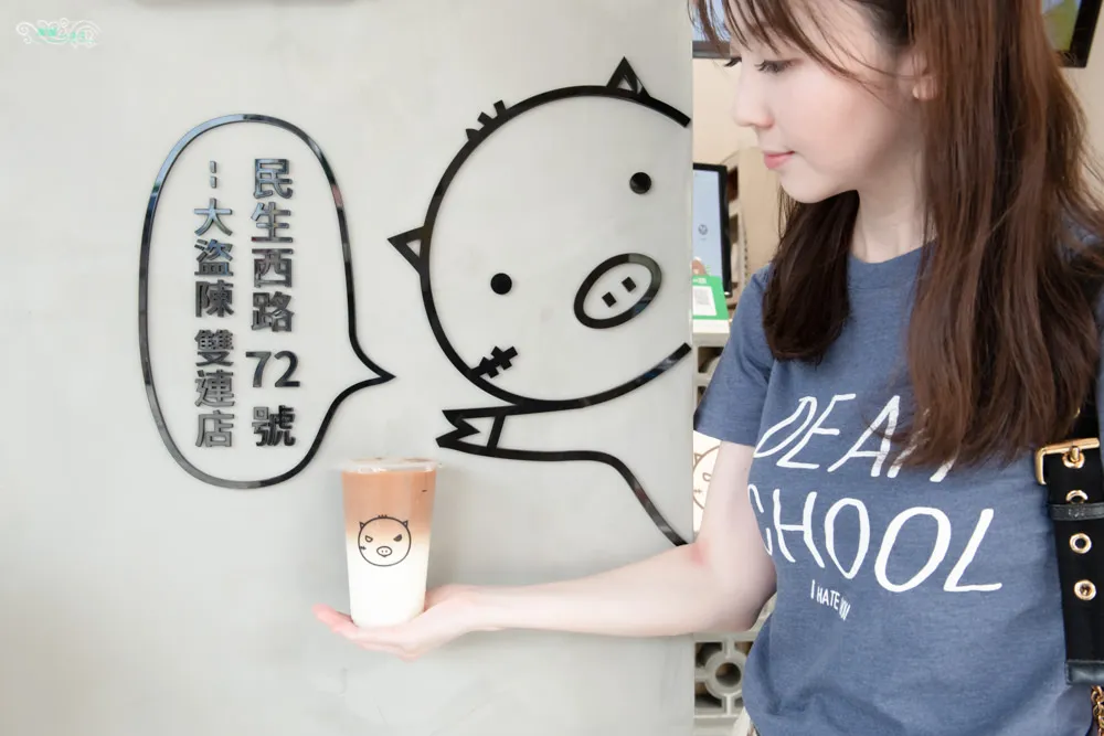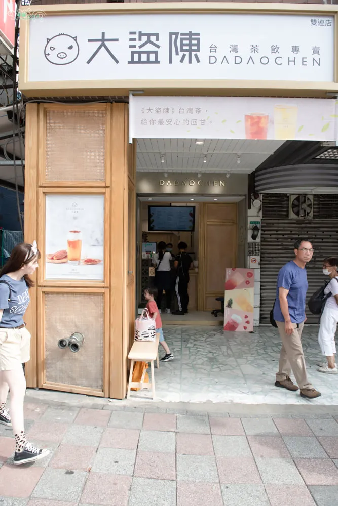 取自大稻埕諧音的大盜陳,將新世代喝飲料的生活習慣結合大稻埕的在地特色,推出各式特色茶飲。大盜陳茶飲DaDaoChen的品牌logo相當有意思,豬給人的形象大多是愛吃又可愛,DaDaoChen取其簡稱DDC來創作豬的眼睛跟嘴巴,透過眼罩跟刀疤來凸顯大盜的特色,
