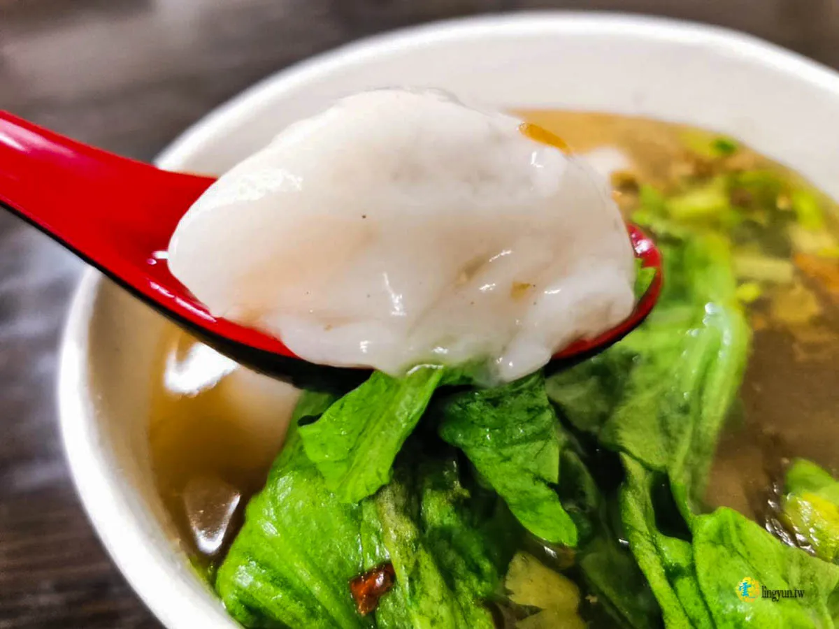 一碗80元的鹹湯圓,共有5顆湯圓,胡椒粉的味道蠻明顯的,所以帶有一點點胡椒的辣度,能不能接受就見仁見智了,凌雲覺得對於味道有加分效果。類似水晶餃的外型,皮算薄的,吃起來很軟嫩,內裡的豬肉餡料鮮度夠香氣足,青菜很脆帶著明顯的油蔥酥香氣,湯裡還有酸菜,輕度的酸味與酸菜香氣,增加了湯頭的厚度也豐富了滋味。