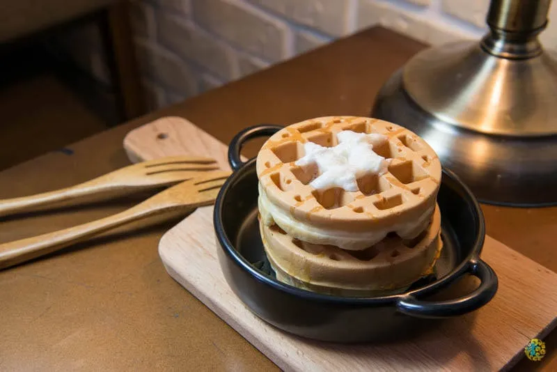 濃郁的奶香搭上鬆餅,輕巧的甜