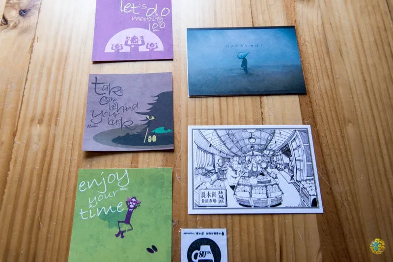 老闆還贈送女王幾款老闆自己設計的精美插畫明信卡,女王超開心的說