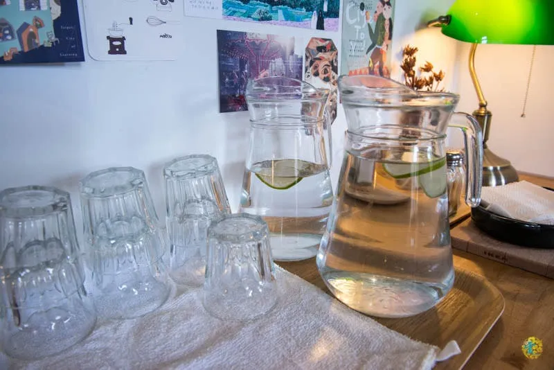 木童的茶水服務是自助式的,也有提供調味品與紙巾等
