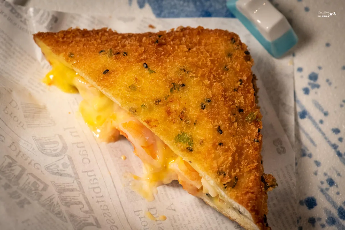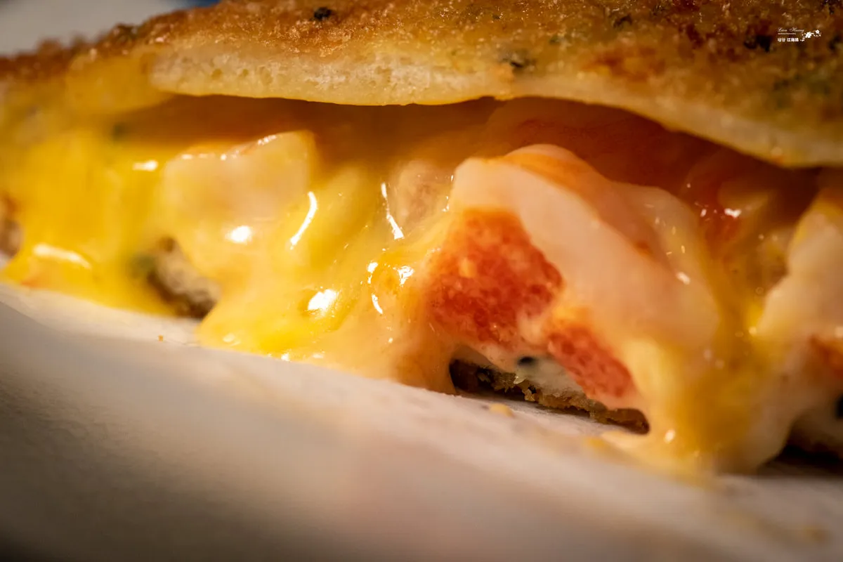 圖|這是一道彷彿在吃早餐的餐點~哈。 圖|口感多層次又互不搶味,滋味更形悠揚。 圖|一口咬下,起司還會牽絲喔~