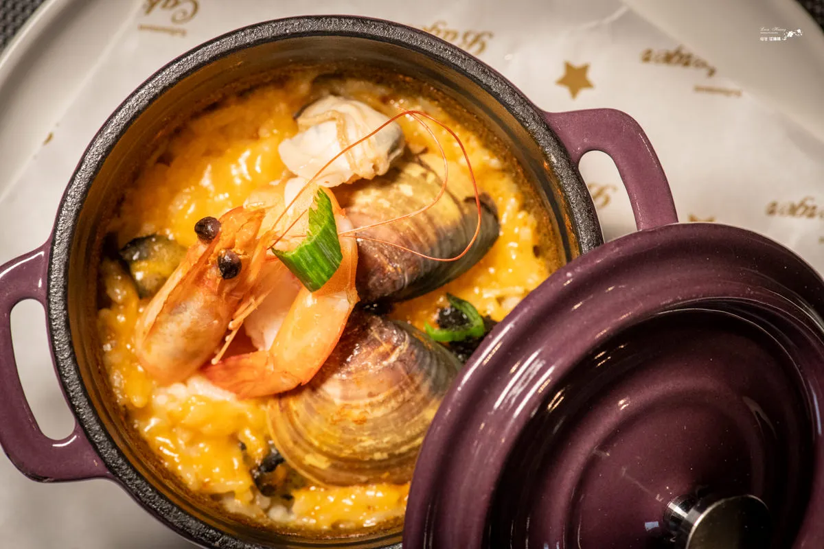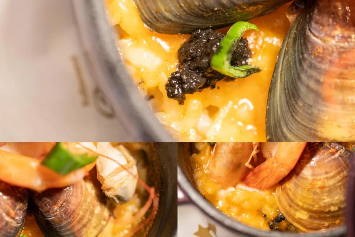 圖|松露的特殊氣息盈滿鼻腔,讓烤粥有著美味的深層表述。 圖|烤飯的香氣和軟嫩的口感,與鮮蝦蛤蜊的鮮味相得益彰。