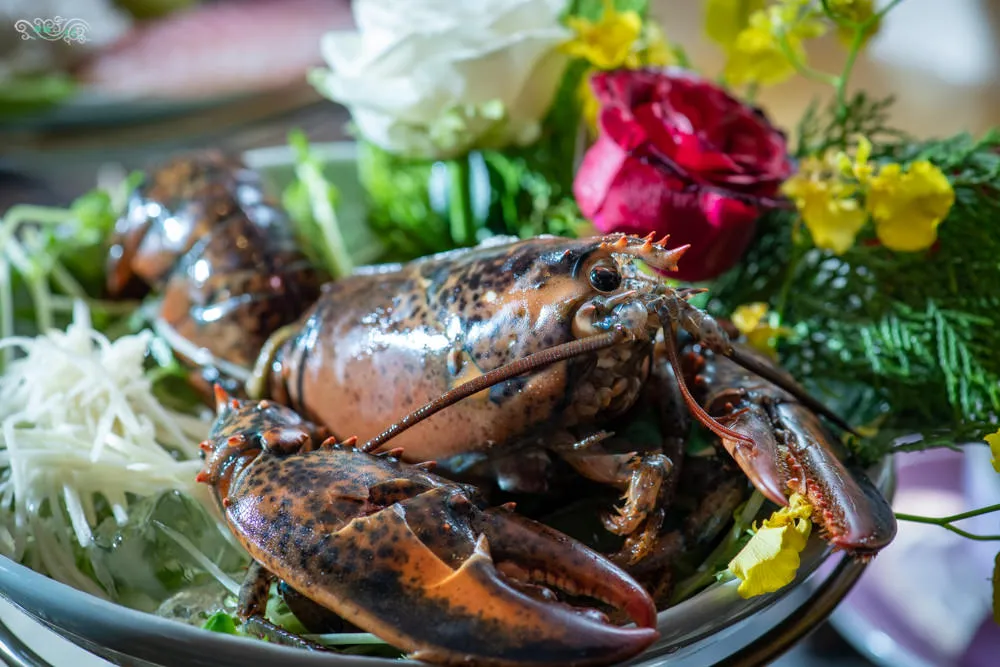 圖|龍蝦在處理之前會送上桌讓顧客確認後再送去料理,此時還是活的說。