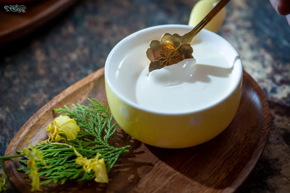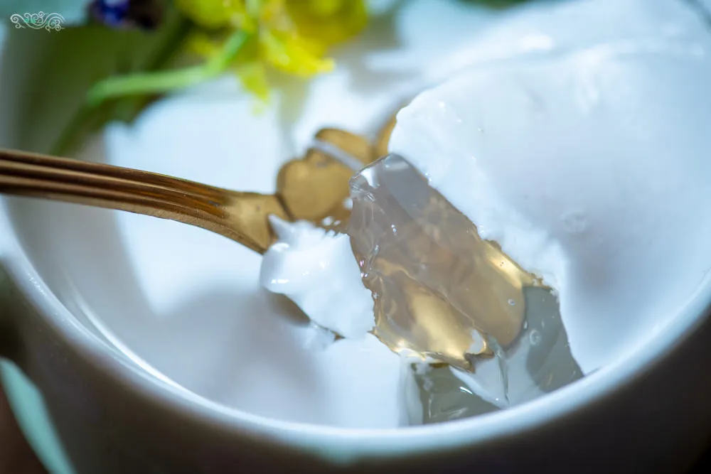 沒有添加其他非天然的添加物,白色乳酪吃起來軟軟的,淡淡素雅的椰香盈滿口中,涼爽的椰果增加了不少口感。