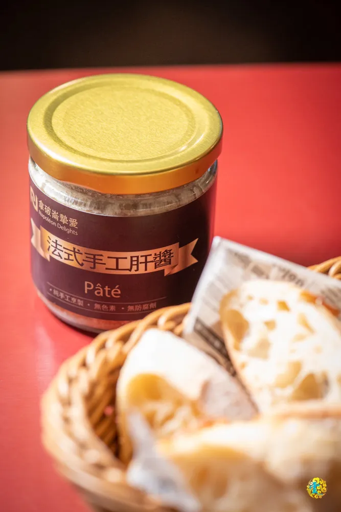 拿破崙摯愛的法式手工肝醬,主要成份為雞肝、豬肉、雞蛋、麵包粉、白葡萄酒、法國給宏德天然海鹽、黑胡椒、百里香、月桂葉等天然香料,100%純手工烹製,無色素,不含防腐劑添加劑。單吃肥腴鮮美,薄荷味濃郁,味道清涼爽口,可以塗抹在麵包、餅乾上,或者搭配在其他主食上,可以有效的增添不同的風味。每罐180g,保存期限為12個月,除了現場選購之外,還提供宅配服務喔,請電洽服務人員。