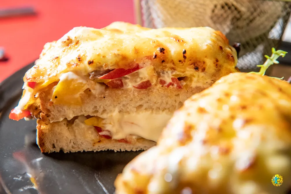 這是鹹點的下午茶,基本上一份三明治配上一杯飲料,飲料有花茶、紅茶、綠茶、咖啡、汽水或果汁可供選擇,三明治則有克羅克先生三明治、法士達牛肉三明治與燻雞肉三明治等。這次凌雲選擇法士達牛肉三明治,內裡是菲力牛肉、青椒與紅椒等蔬菜,上方是焗烤起司,鹹、甜、脆、嫩的各式滋味,彼此融合得不著痕跡。