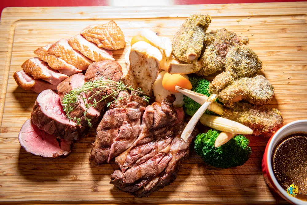 讓無肉不歡的人可以大吃特吃,內容包含8盎司的香烤肋眼、8盎司的烤蘑菇菲力、5塊法式小羔羊以及法式香橙鴨胸,等於什麼肉都有了,有油的沒有油的也都有了,非常適合聚餐時選用,可以滿足所有愛吃肉朋友的需求。