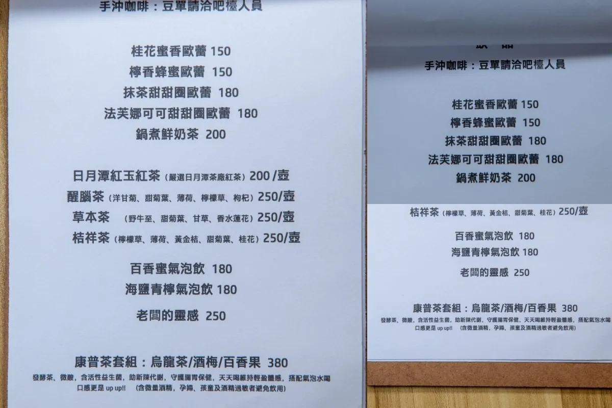 小皮烘培的菜單,簡單而精緻,一式三份的板夾組合展現了簡單卻不失豐富的風格。當中的亮點推薦自然是解鎖生吐司套餐,以及受到廣泛好評的康普茶套組和經典核桃布朗尼佐鮮奶冰淇淋。