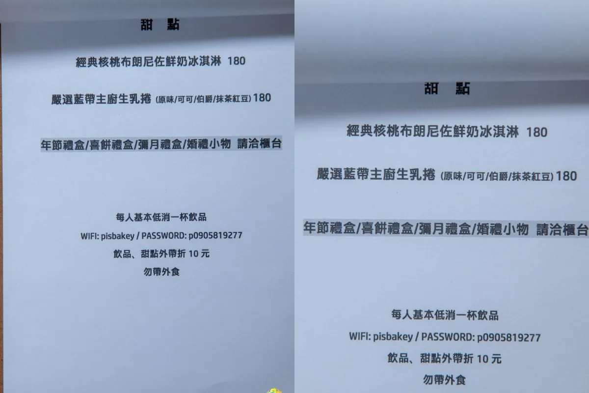 每人低消一杯飲品,飲品與甜點外帶的話,還可以折$10喔,店內提供wifi與插座。此外,若有年節禮盒、喜餅禮盒、彌月禮盒或婚禮小物的需求,歡迎隨時向櫃檯詢問。