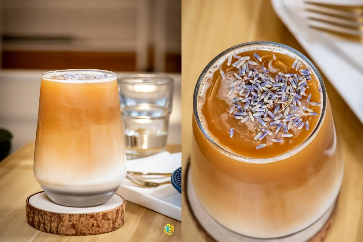 一杯歐蕾上灑滿了豐富的薰衣草,薰衣草的數量放的超多,當然後來主廚有解釋了緣由。薰衣草為歐蕾注入了淡淡的花香,與歐蕾本身的奶香、咖啡苦甜相互交織。口中的滋味層次豐富,帶有微妙的花草風味,同時保持了咖啡的濃郁和奶的滑順,在味蕾上帶來了一場極具層次感的花香饗宴。