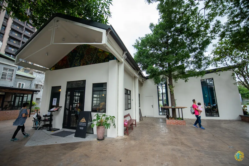 癮食聖堂 POPPY CHURCH的後方是一大片空地,傍晚時間不少附近的居民在此散步休憩,或者帶著毛小孩來此奔跑。