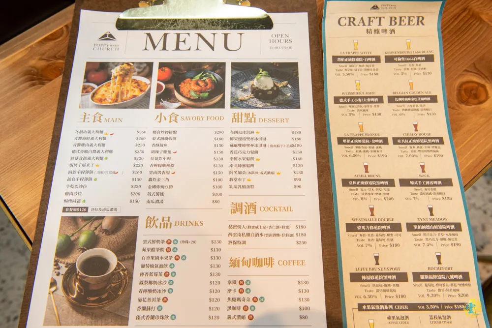 癮食聖堂 POPPY CHURCH白天是質感風咖啡廳,提供中西合璧的特色美食與浮誇系下午茶,夜晚時分則變身為複合式的夢幻餐酒館。凌雲此次前來是因為他的浮誇系下午茶而來,下次找時間晚上來體驗看看他夜晚的迷人風情。詳細菜單請見癮食聖堂FB粉絲頁