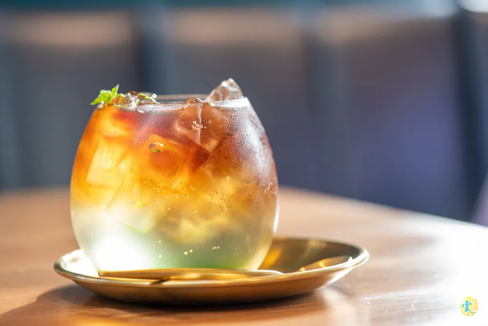 這是杯必點的夢幻漸層飲品,最底下是香蘭糖醬,中間是氣泡水,最上層則是普洱茶,放片香蘭葉點綴,結合成一杯絢麗漸層的香蘭蘇打。綿密的氣泡口感輕柔的帶起普洱茶的醇厚韻味,含蓄的茶香揉合香蘭葉汁的獨特芋香,是幸福甜美的滋味。