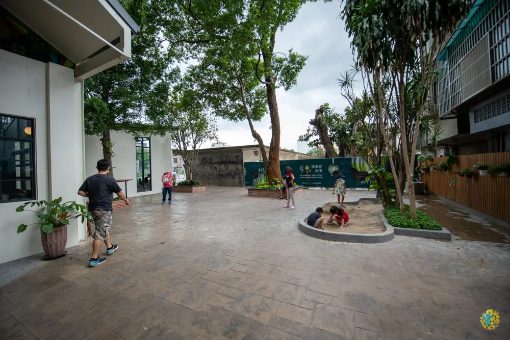 圖|癮食聖堂有很多不錯的攝影點,等你去挖掘。 圖|沙坑雖然不大,卻是孩子們的快樂天堂。 圖|復古式地下水泵浦還可以使用喔。