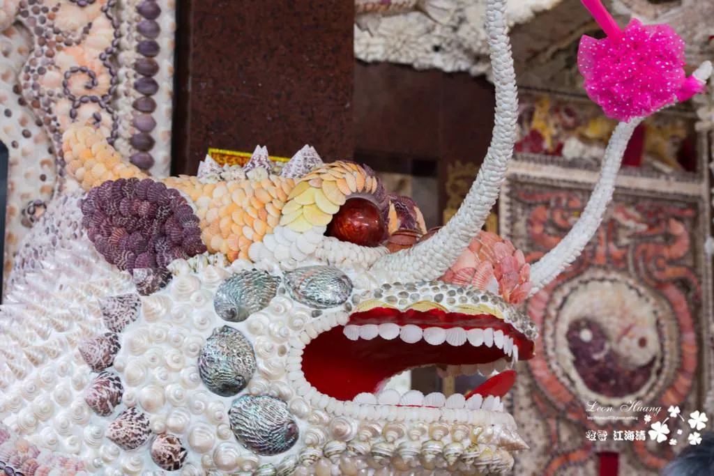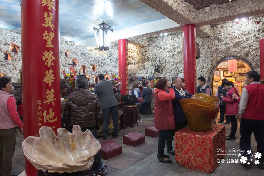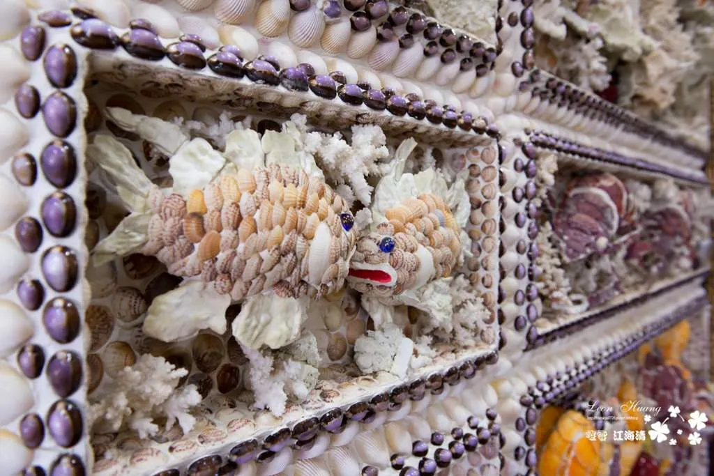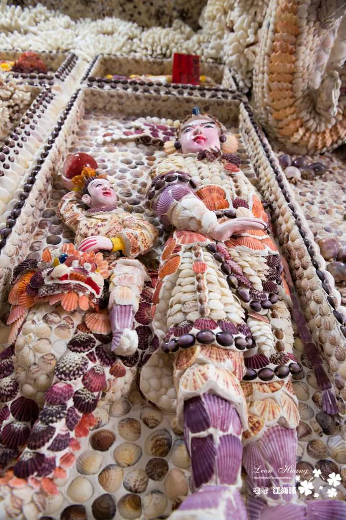 一間非常特別的廟,整間廟都用貝殼跟珊瑚做裝飾點綴
