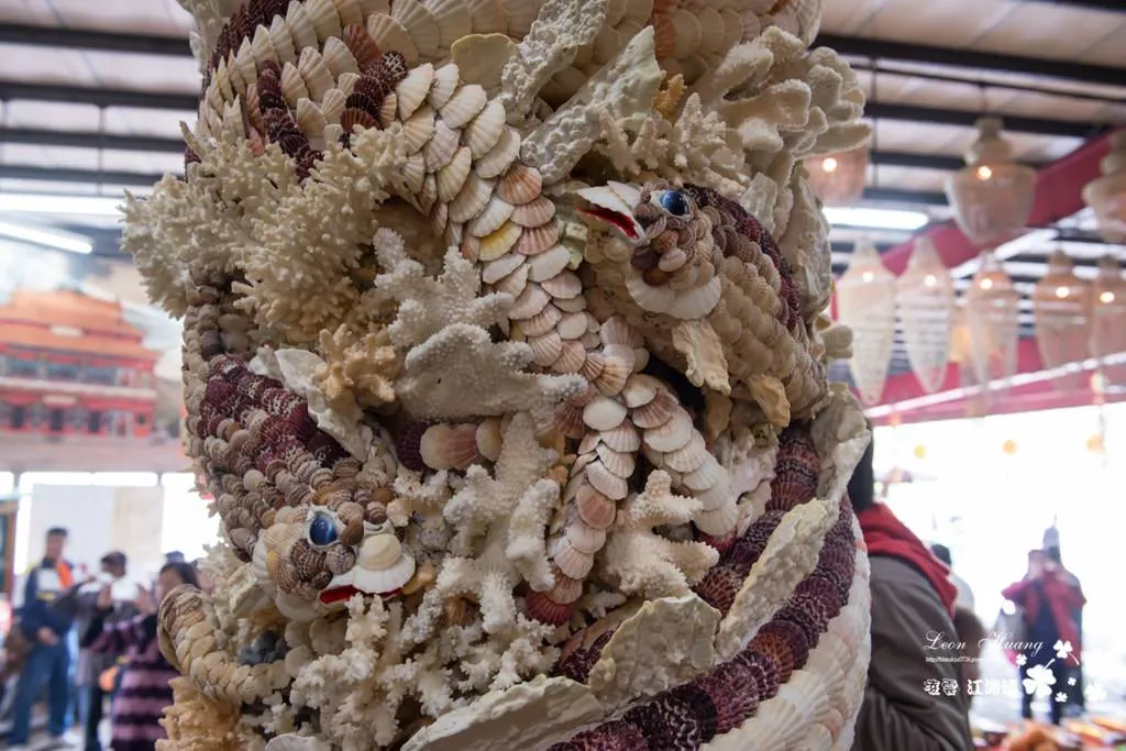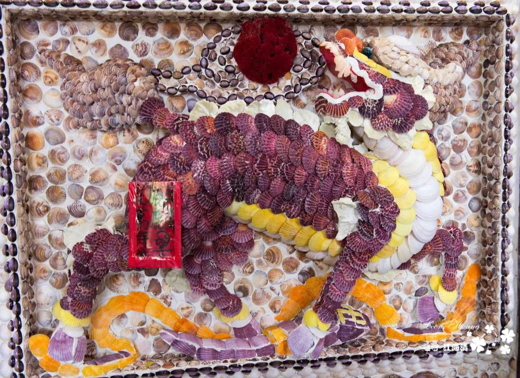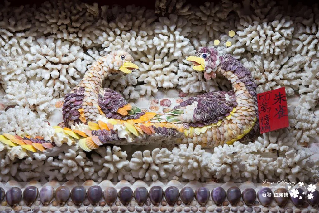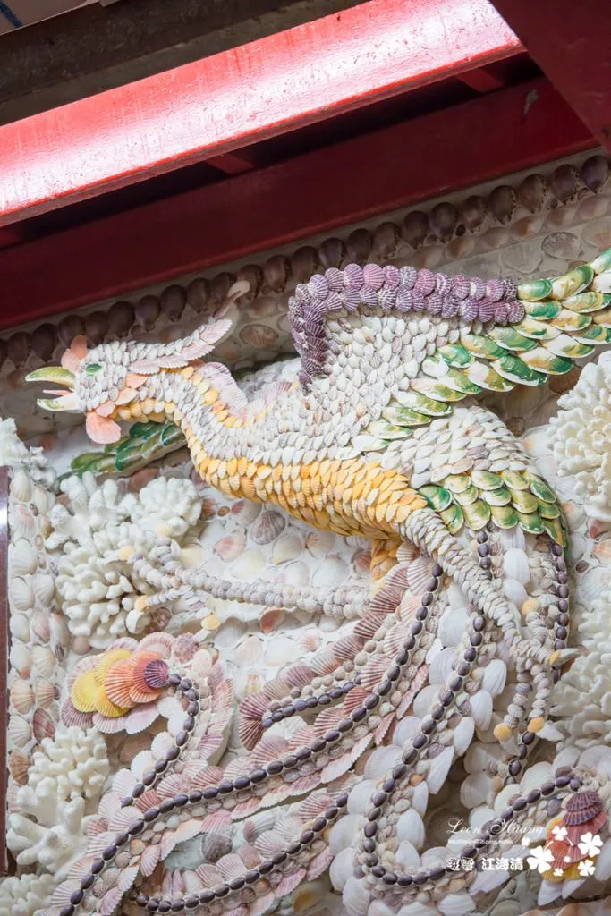 整間廟總共用上百種珊瑚與六萬多種貝殼堆砌而成,共花了二年時間才建造完成