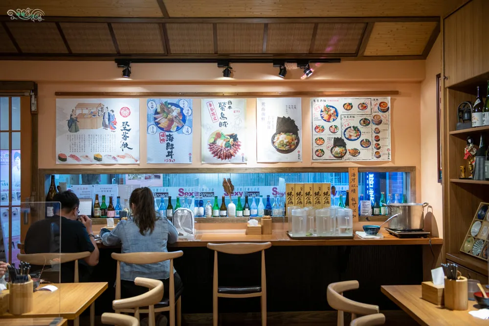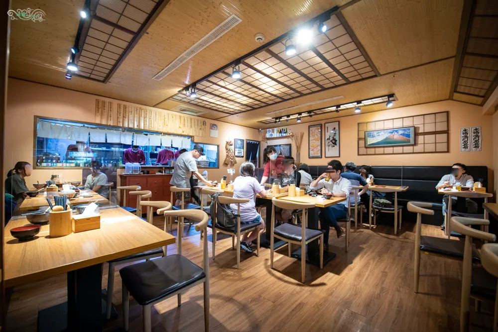 坐著做。海鮮丼飯專門店將質感內斂的日式美學,帶入整體用餐空間,用米黃色系為基調鋪陳溫暖氛圍,透過特色壁掛與簡單素材,生動的演繹日式食堂的空間表情。