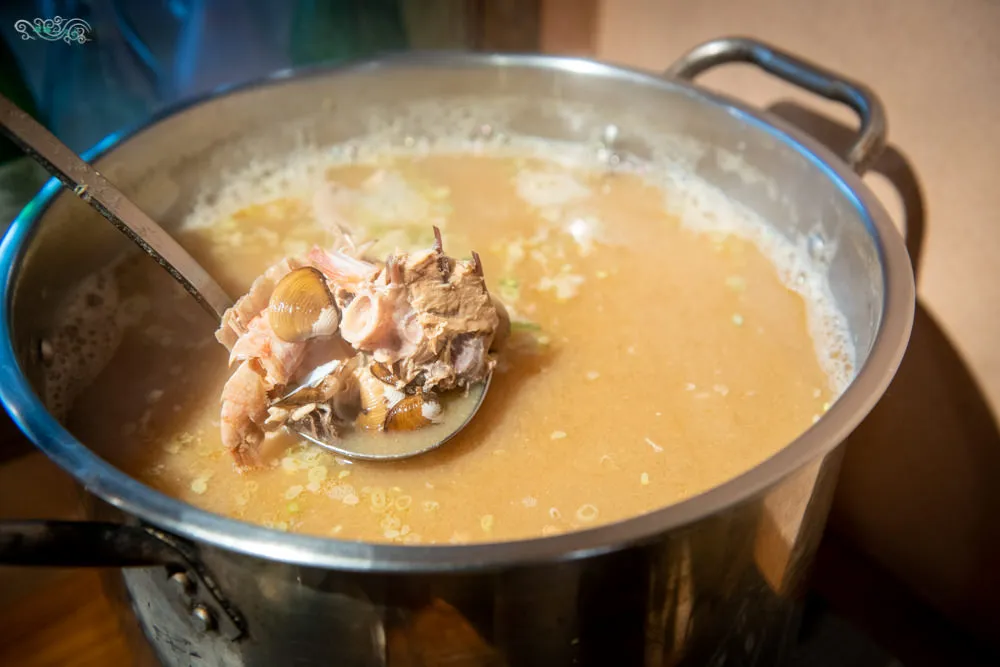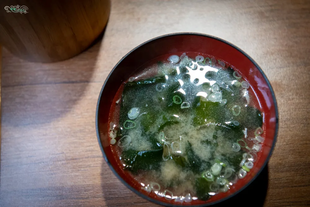 只有第一碗上桌的湯,坐著做有提供海帶跟蔥花,在店內有提供一大桶的味噌湯,讓顧客可以自行續碗,整桶好湯主要放入蝦頭、魚骨等諸多好料熬煮,海味的鮮美盡在舌尖上綻放。當然如果還有需要海帶跟蔥花的話,告知服務人員,一樣可以提供。