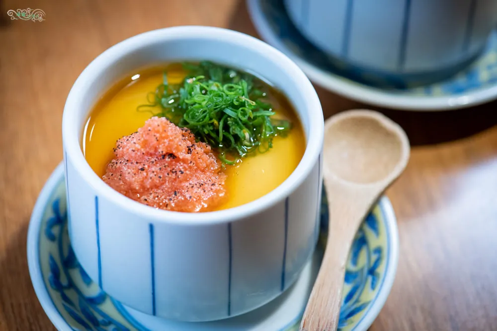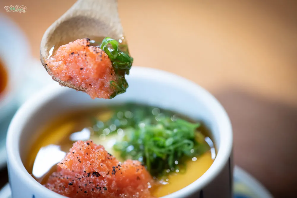 炙燒過的明太子,輕微的辛辣刺激著味蕾,每一口都讓人驚艷,綿密的蒸蛋更添風味,透過舌尖可以感受到豐富的味覺層次,讓人欲罷不能。