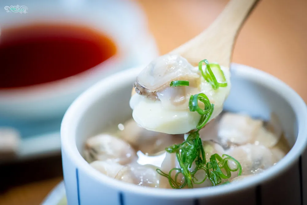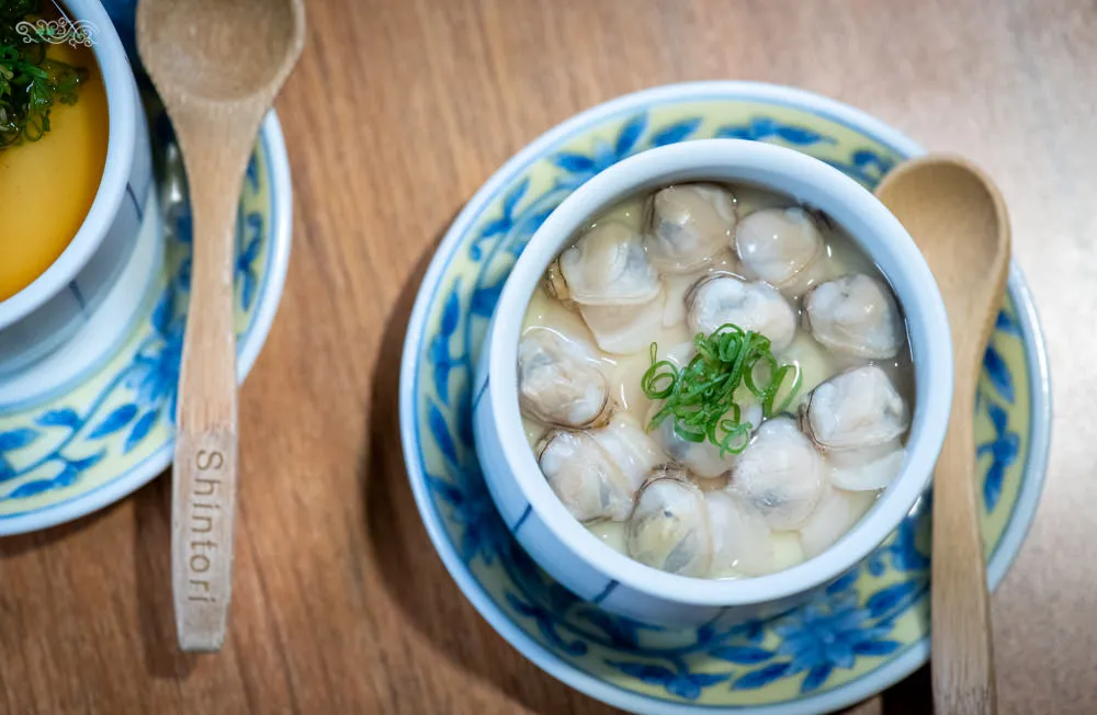 滑嫩可口的蒸蛋鋪上滿滿的蛤蜊,細緻的口感中滿是新鮮海味,舌尖充滿清甜的滿足幸福感。