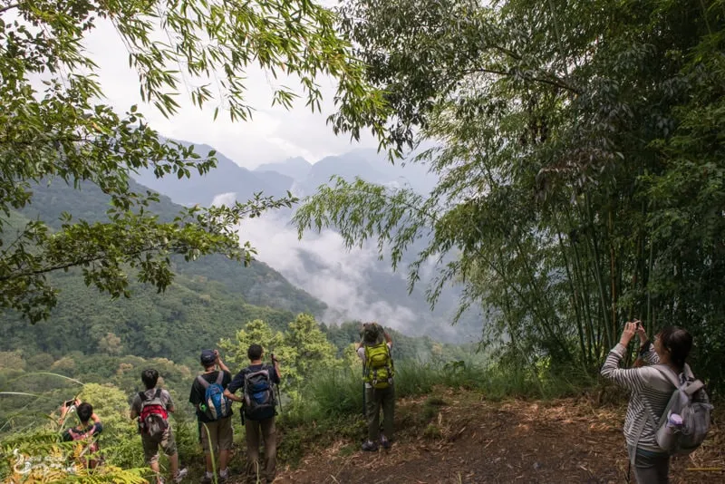 大家一邊聊天一邊欣賞山嵐
