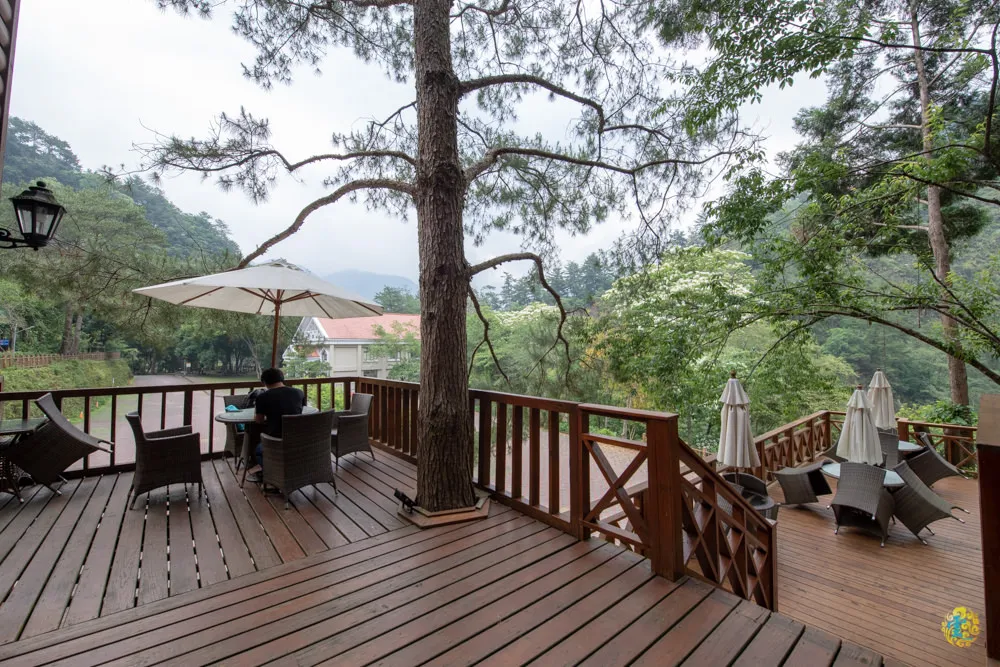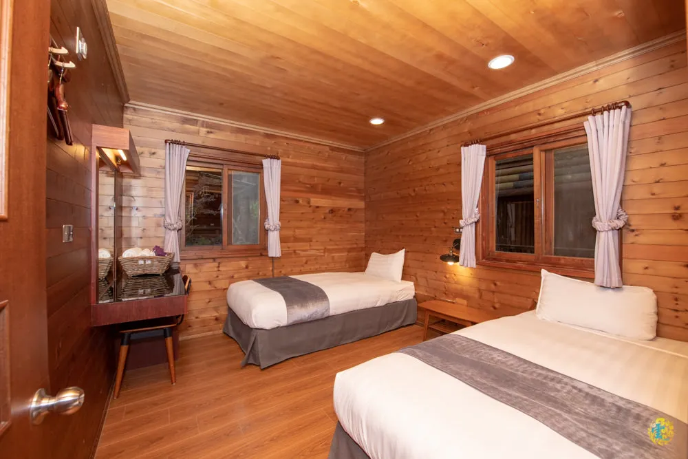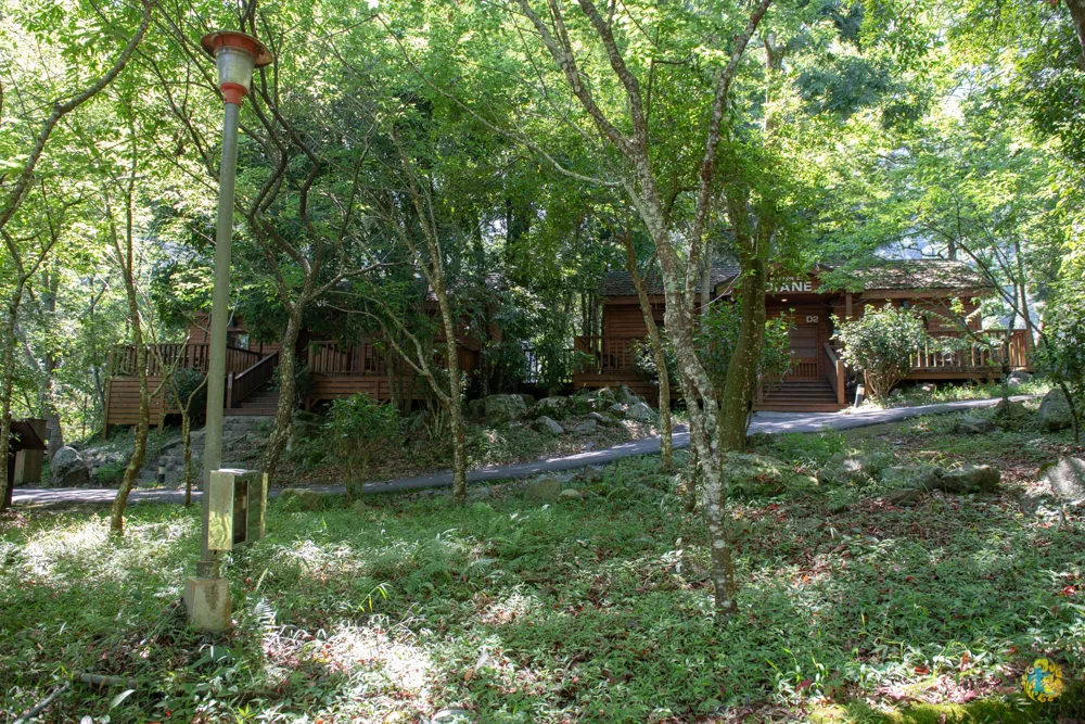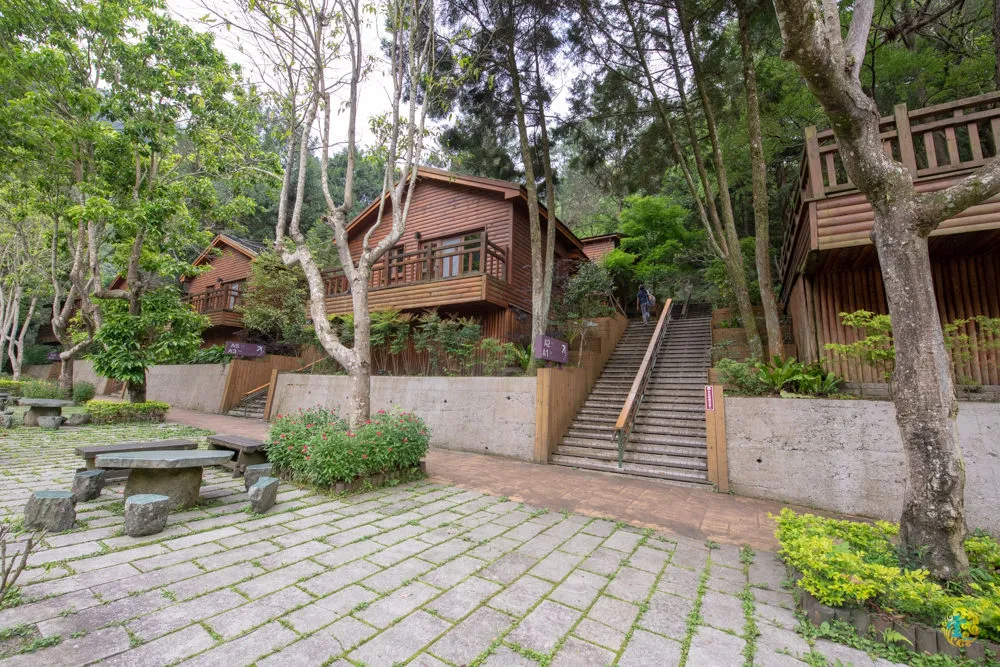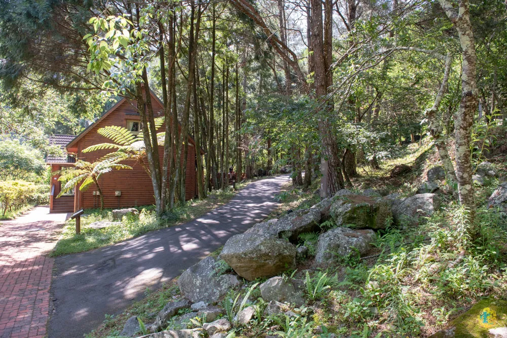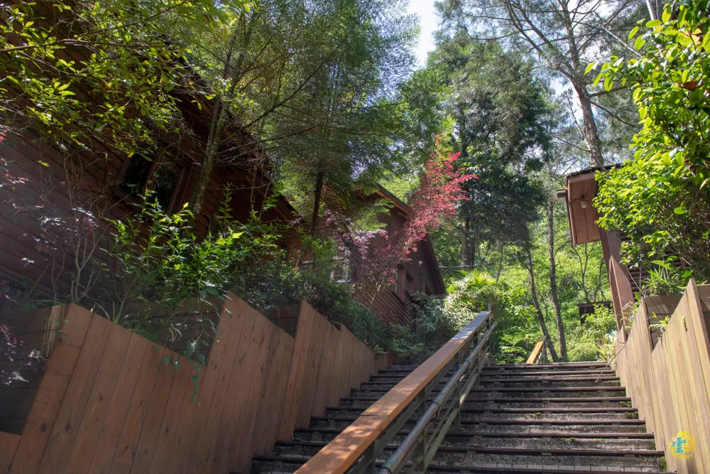 接著來到第二停車場,這兒都是星空屋雙人套房,從小木屋旁的階梯直上,有較好走的柏油路與階梯可以選擇,兩條路最後會在靜海寺前方匯集。