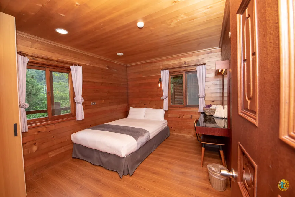 自然療癒系的精緻渡假小木屋,每間都是獨棟設計,以楠木、杉木、檜木等原木搭建而成,每間都有其不同的原木芳香氣味,凌雲此次入住的是A3楠屋。