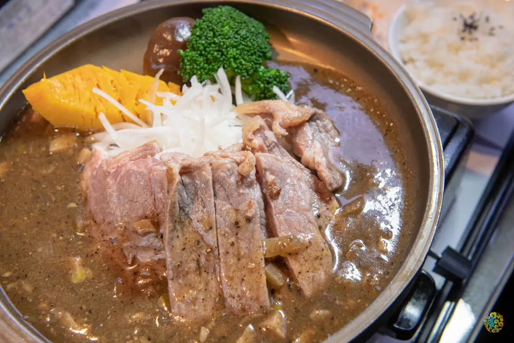 軟嫩的松板豬微微烤過,讓部份豬肉帶點焦脆感,使整體口感多了點層次,綠胡椒在舌尖蹦放,令人回味。