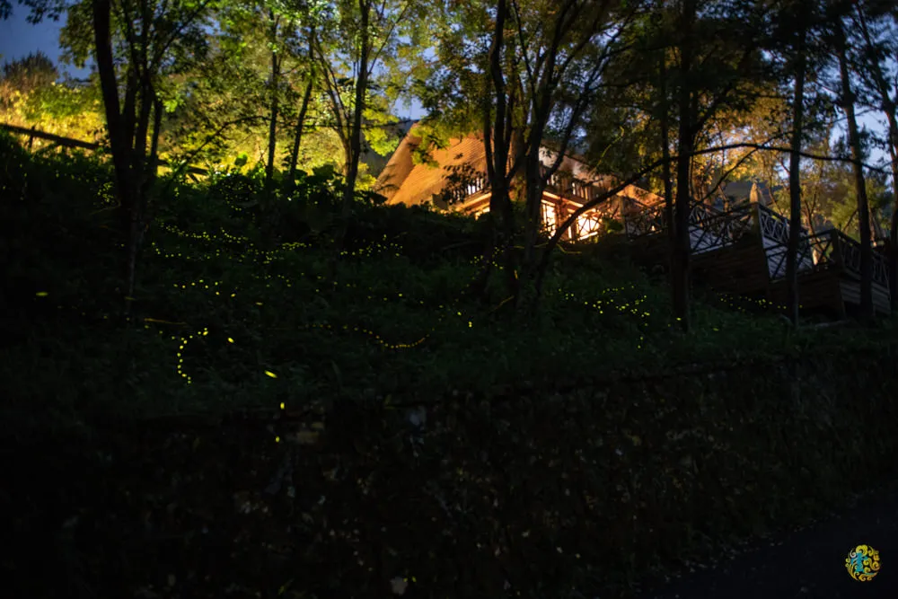 目前五月中算是螢火蟲季的尾聲了,聽從山莊人員的建議,最近又安全方便的賞螢地點是備用停車場的小斜坡,吃完晚餐散步而來,已經好多遊客在此駐足欣賞螢火蟲了說,成群的螢火蟲,在草叢中穿梭飛舞,在黑暗中閃爍螢光,甚是美麗的夜景。涼爽的晚風拂面而來,更添賞螢的樂趣。