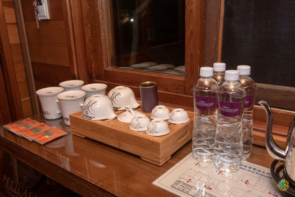 八仙山莊的小木屋都有提供高山茶葉、牛蒡茶與茶具組,也有提供礦泉水,全館使用山泉水,皆可安心食用。回房後泡個茶,三五好友閒話家常,真是人生一大樂事。