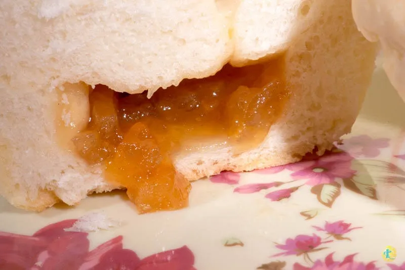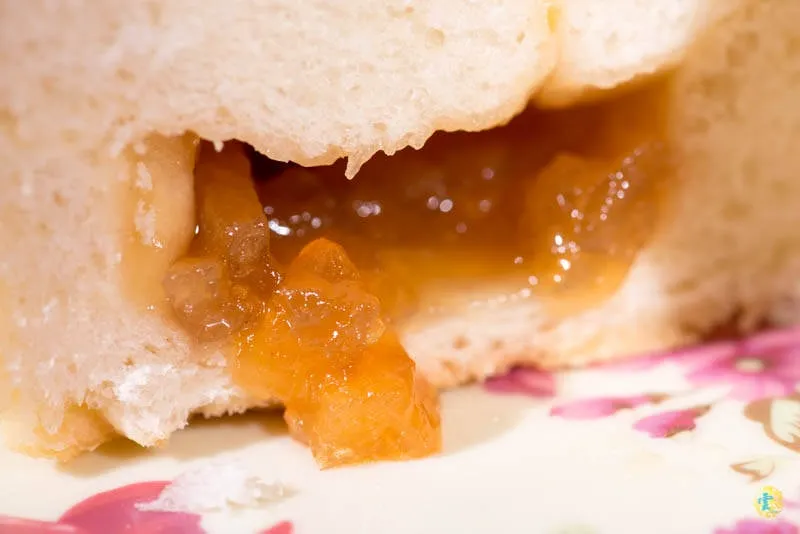 內餡採用新鮮東勢梨熬煮成的果醬,以小切丁呈現滿滿的蜜香