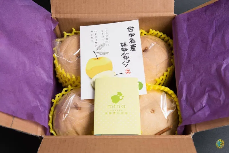 打開包裝,到底是梨子還是麵包,一時之間還真的會人搞混說~哈 裡面還附贈一張精美的東勢水梨明信片,基本上就是一個精緻的水果禮盒~美味麵包禮盒。