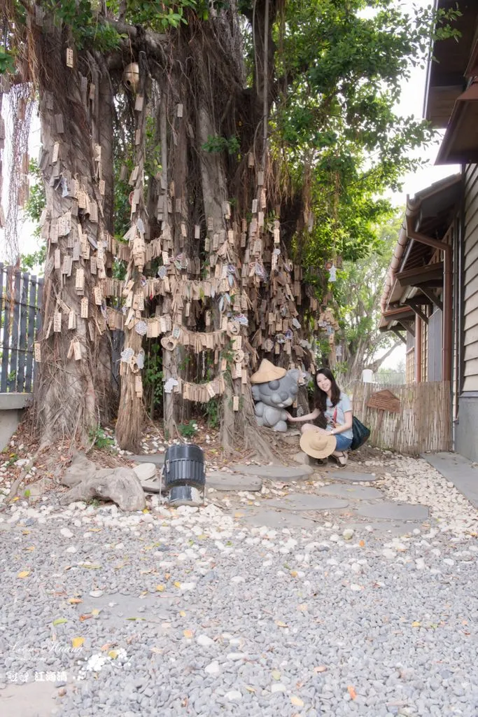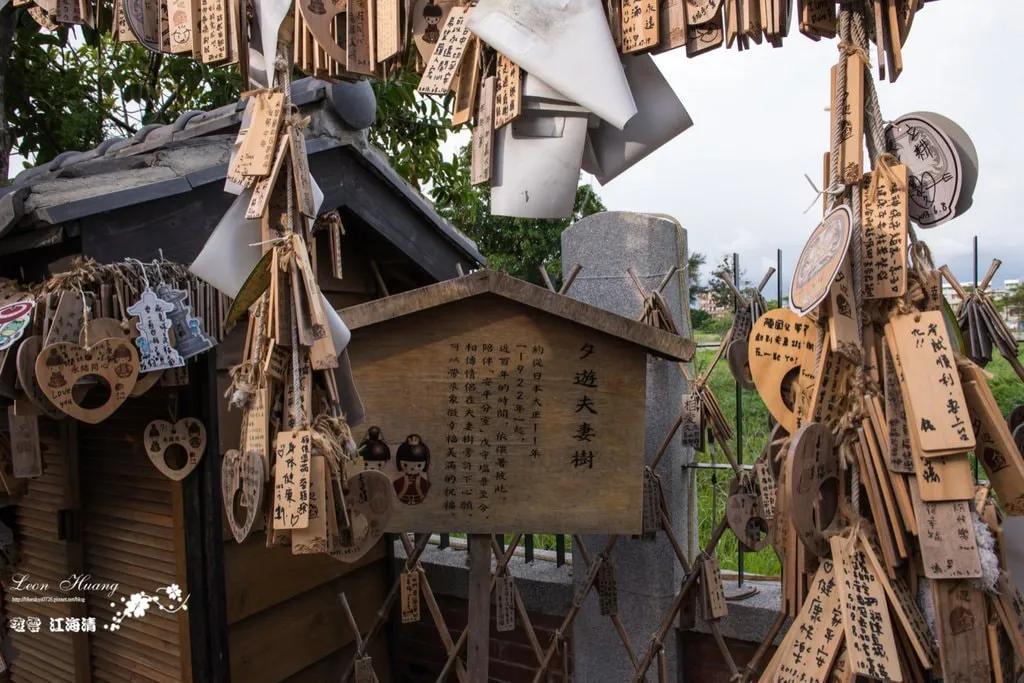 這裡原本是日據時代台灣總督府專賣局台南分局安平分室,出張所亦即出差的地方,日據時代台南算是產鹽重鎮,而鹽日語發音為SI O,所以音譯就叫夕遊,\所以這裡就被稱為~夕遊出張所,還未進去,右邊就掛了一堆許願牌。