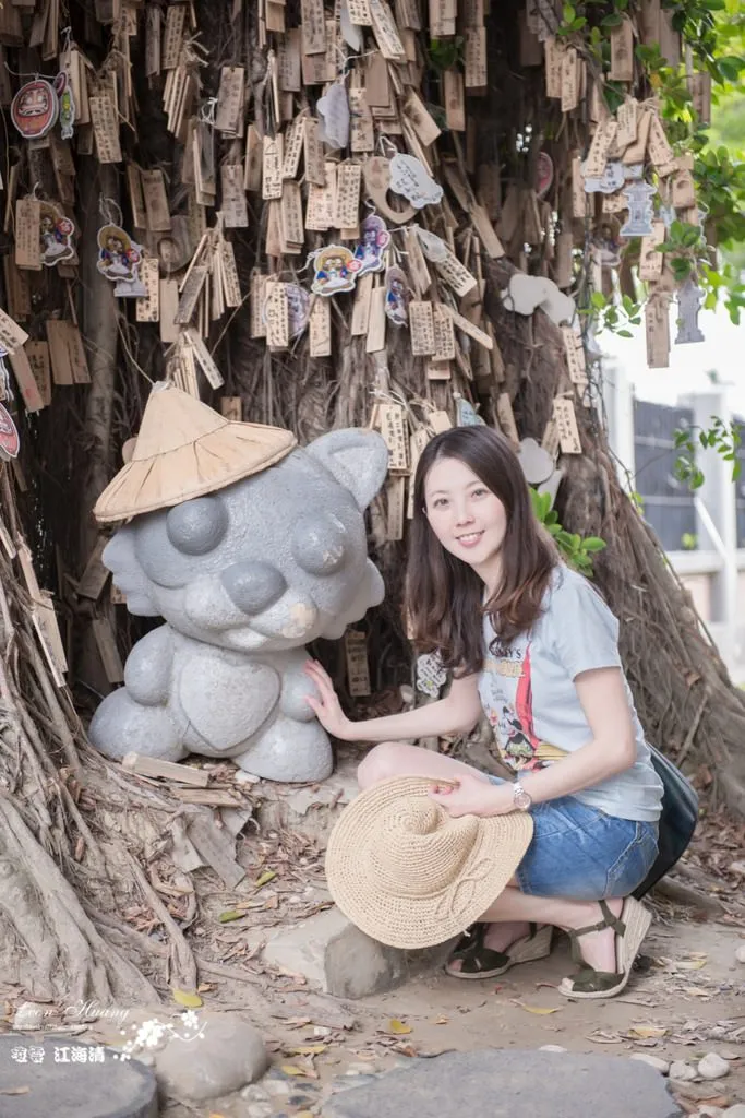 因為一進去左手邊,就是一顆超大的許願樹啊,上頭掛滿的人們的心願,一旁還有個帶著斗笠的可愛狸貓(在日本,狸貓是吉祥動物之一)~肚子還有個可愛的愛心圖案呢。