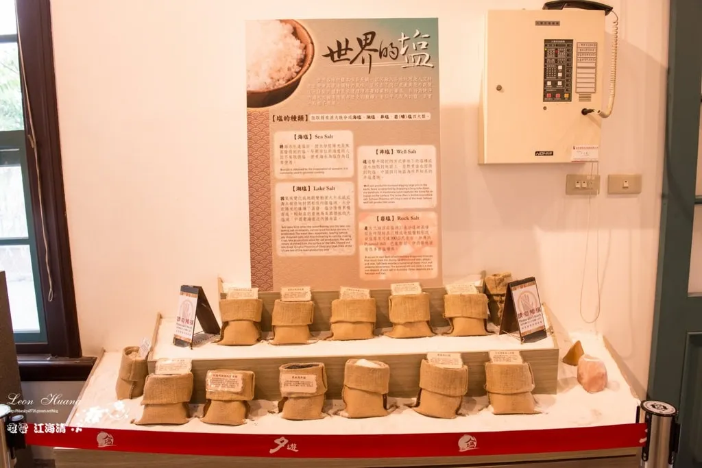 還有介紹世界四大鹽,分別是海鹽、潮鹽、井鹽、岩鹽,也有展示各地鹽種。