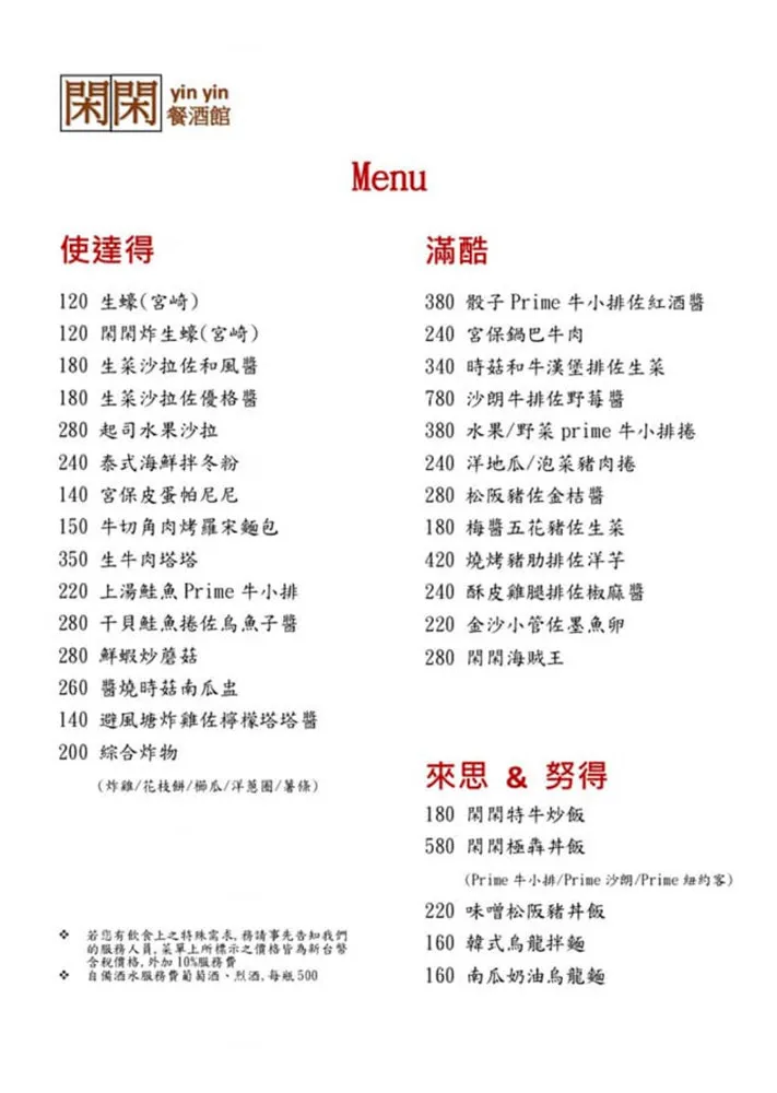閑閑餐酒館位在松山南京東路靜逸的巷弄轉角間,身為老饕的老闆與福華體系出身的廚師們,擁有西餐三十幾年,中餐十幾年的老經驗,以獨特的創意思維,激盪出令人激賞的美食料理,透過中西Fusion的理念,重新詮釋許多熟悉的料理,卻又讓人驚喜連連。餐點美味又平價,用餐氛圍輕鬆又愜意,就如同酒館的英文名稱一樣-YINYIN(台語的閑閑),就是要讓你像在家一樣的輕鬆自在,同時又能享受高級餐廳的服務與高水準的美味料理。