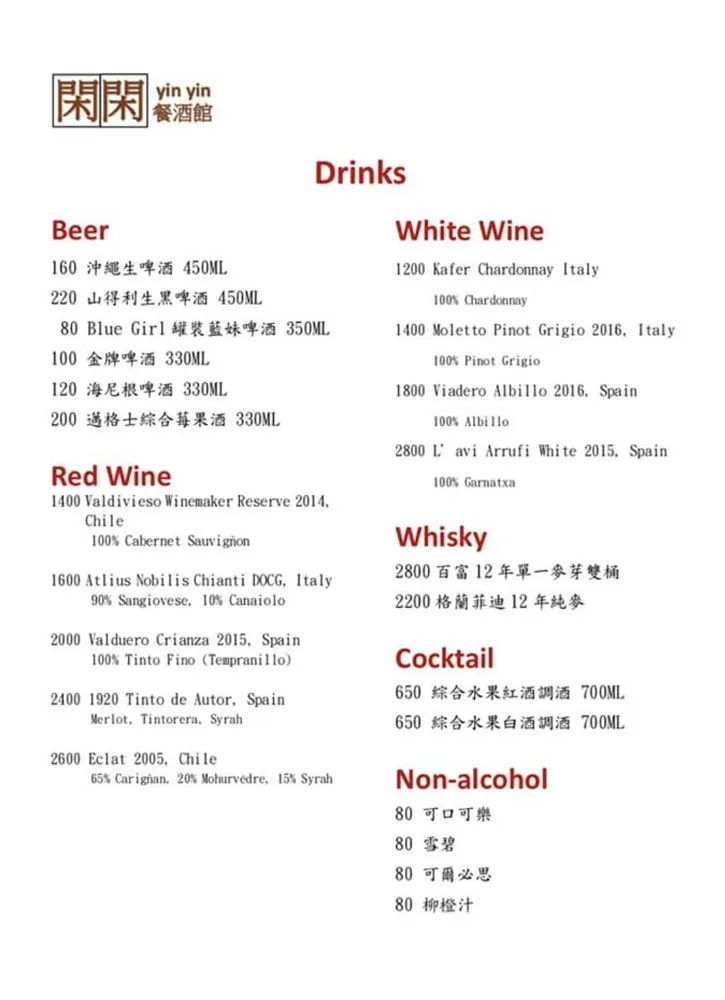 店家不定時會開發新的菜色,最新的菜單與酒單請現場洽詢或是追蹤臉書粉絲頁。