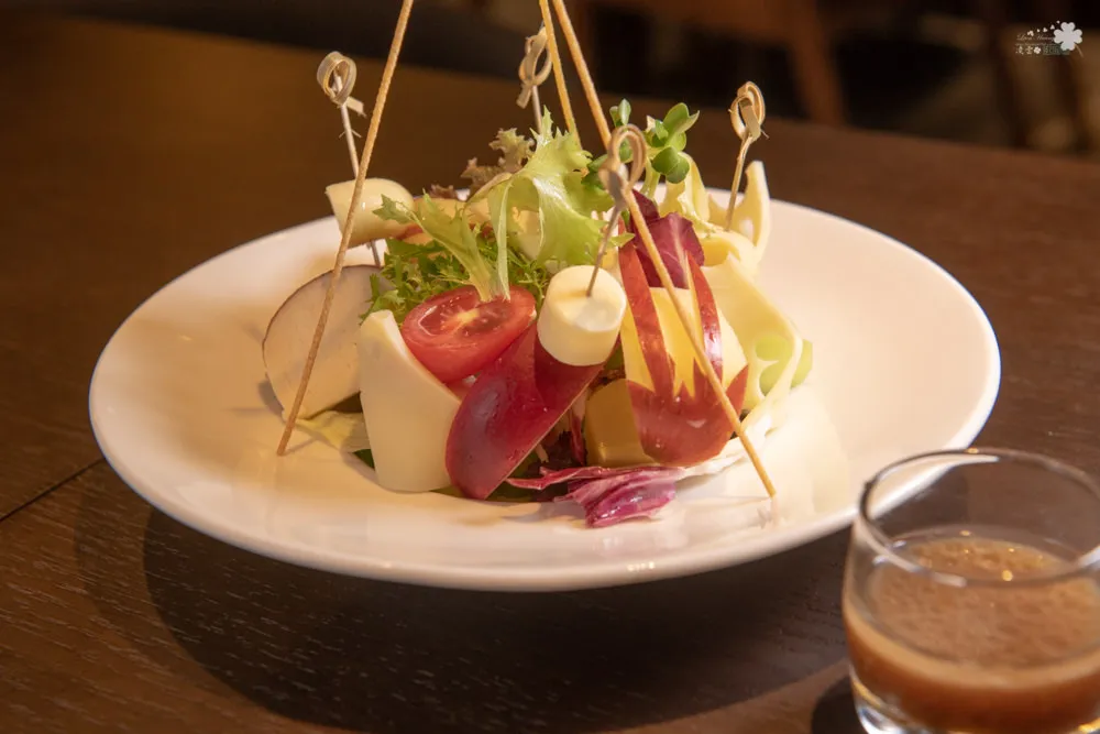 奇異果出奇的甜讓人印象深刻,混合其他水果如蕃茄、蘋果、蔬菜等,鮮甜爽口。當中穿插的新鮮芝士更是一絕,潔白濕軟的新鮮芝士,散發出淡淡清新的奶香和一點點的酸味,吃起來仿若在吃優格一般,搭配著蔬果一起吃,酸甜交錯的味道刺激著味蕾,真是令人驚豔。