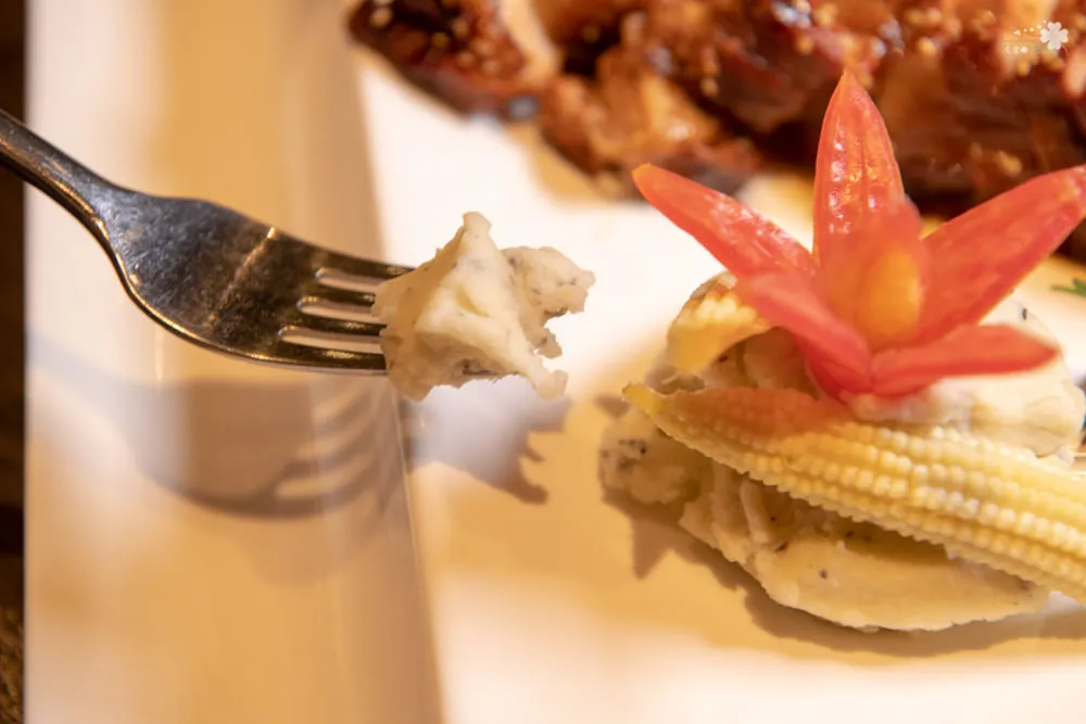 作為配菜的洋芋泥,裡面還摻有松露點綴,讓洋芋泥的口感更為立體,搭著豬肋排一起入口,口感多層次又互不搶味,滋味更形悠揚。