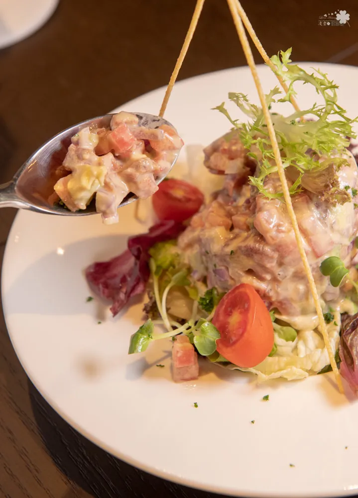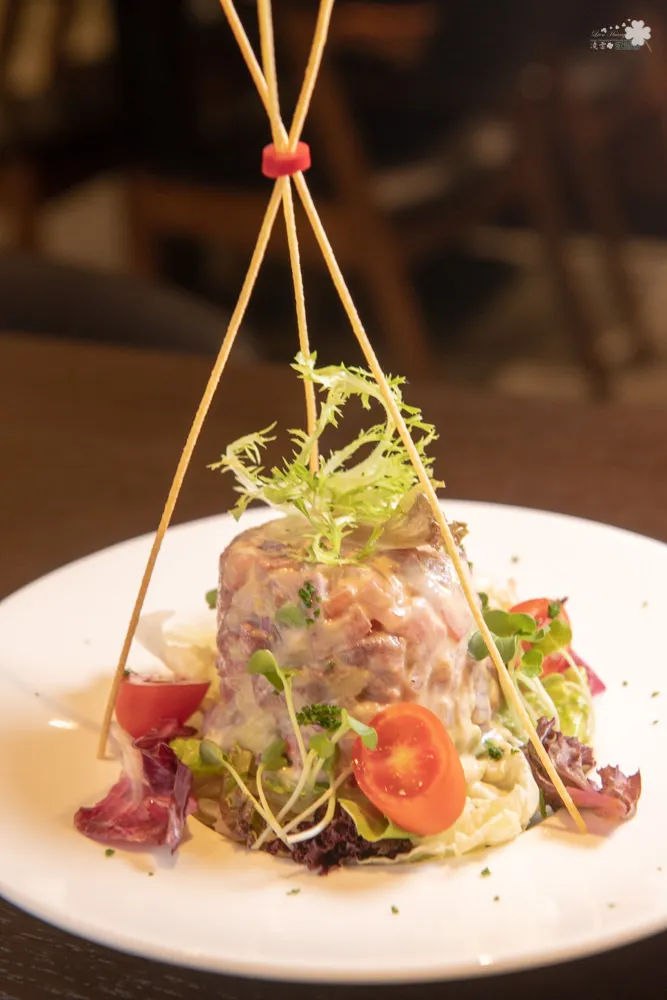 牛肉選用出生一百天的小牛隻,肉質非常鮮嫩甜美,多種食材質地與風味在嘴裡融化,生牛肉的鮮味在口中橫衝直撞,非常立體的口感。