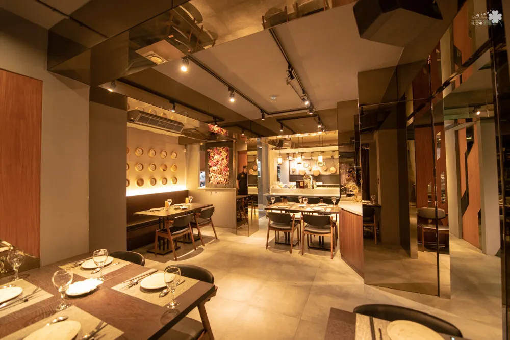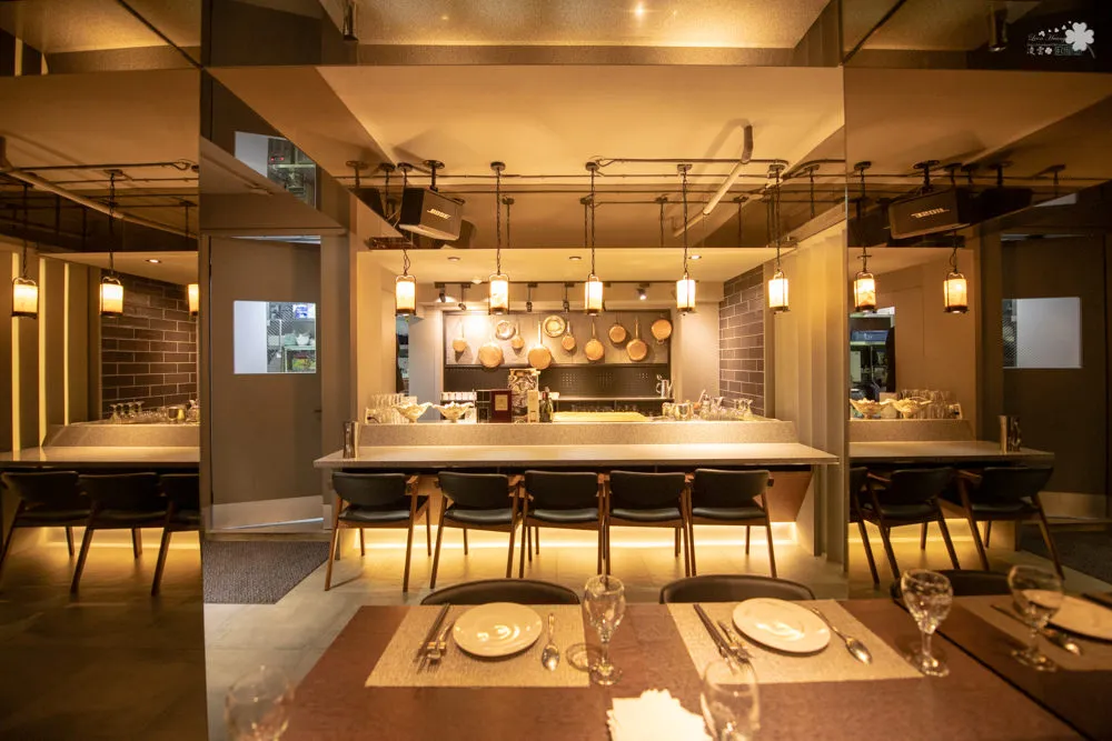 閑閑餐酒館以暖色為基調,利用原木配合HOBBYLight打造透亮光線的空間設計,營造輕鬆浪漫的現代輕法式用餐氛圍,在透過整片落地窗、不規則與大面積的鏡子,這種視覺穿透的手法,完美的hold住空間的寬敞感。