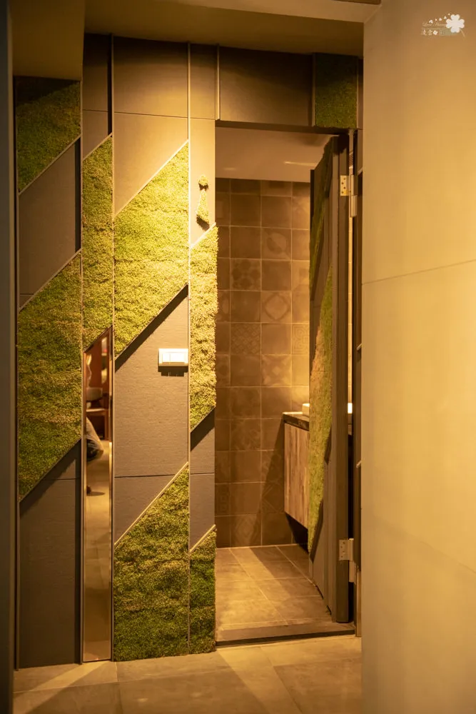 閑閑餐酒館有兩間包廂,分別可容納6-10人,因為已有客人在,所以凌雲就沒拍了。廁所外觀使用草地的概念去設計,頗有意思的。