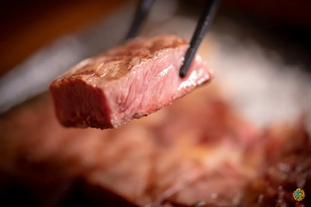 牛肉本身已有加鹽提味,如果還覺得不夠,餐盤角落還有些許鹽巴可供沾取。細緻綿密的油花在舌尖化開,舞動著柔嫩甘甜的口感,讓人不禁一塊再一塊。