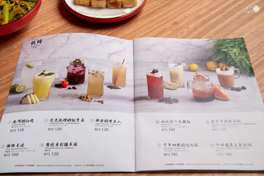看著精美的菜單,跟友人反覆討論著該點個套餐在加點呢,還是全部單點好呢,最後決定全部單點,因為只有微風南山店才有的新菜色都太誘人了。