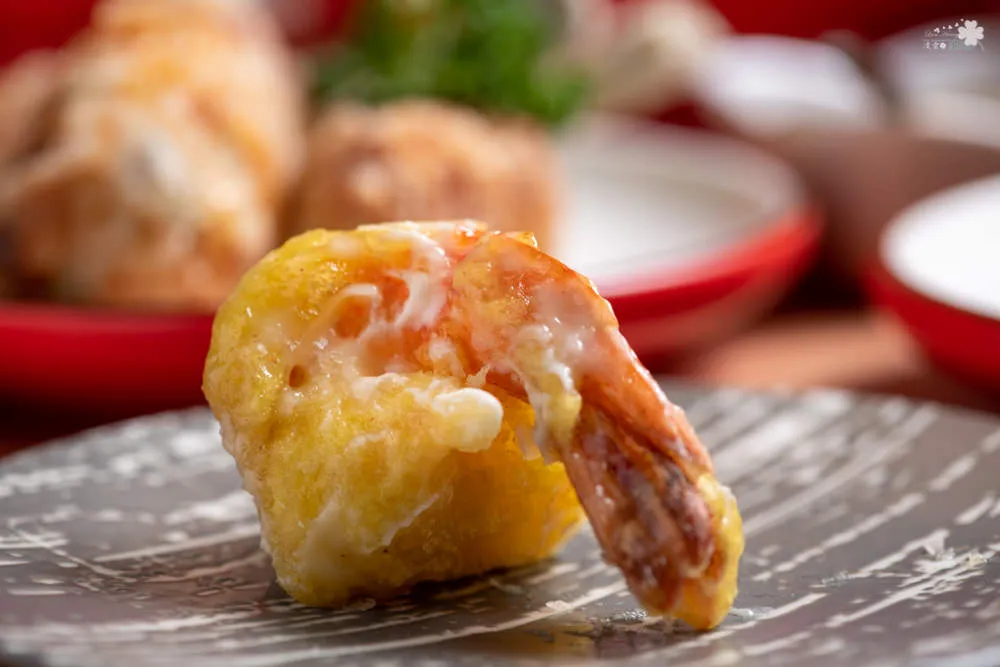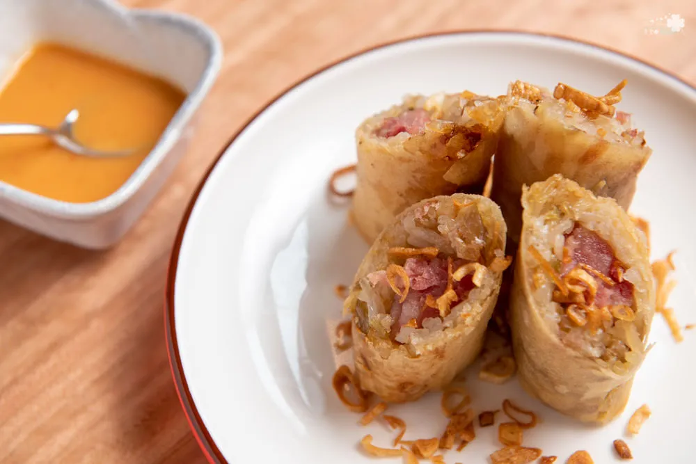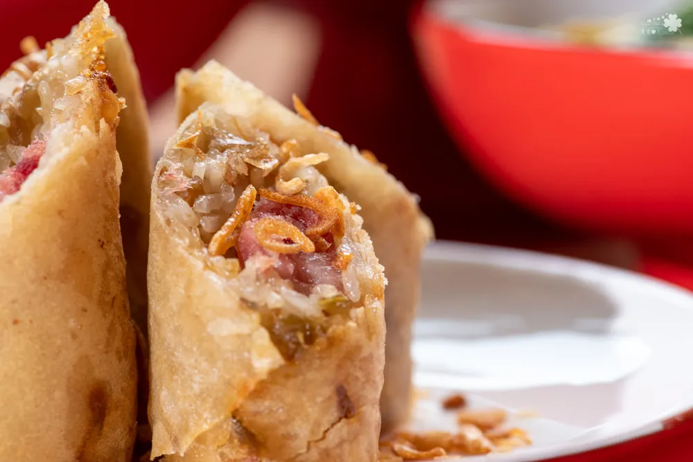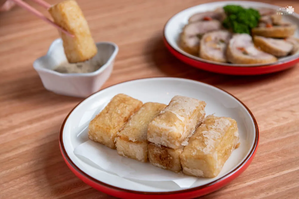 這是道蘭陽經典小吃,有去宜蘭基本上都會買來吃的點心之一。將剁成泥的蝦仁放入高湯中拌煮成漿,等候冷卻成形再裹上玉米粉與太白粉油炸。一上桌服務人員就提醒,趁熱吃風味最佳,金黃色的薄皮酥脆,裹著滑嫩燙口的鮮味,兩種風味巧妙的結合成舌尖上的美味圓舞曲。