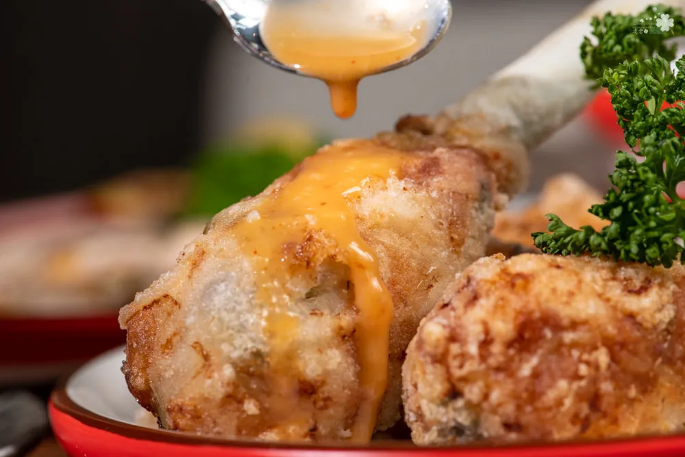 圖|酥脆又清脆龍鳳腿,不同的口感與調味在舌尖共舞。 圖|淋上重口味的紅味噌醬,讓味道調合有層次。