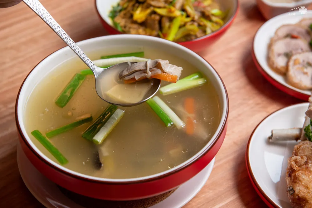 圖|看似簡單的食材卻是經典的美味。 圖|費工的湯品,每一束都能感受到廚師的心意。 圖|酸爽的湯頭正對凌雲客家人的胃。